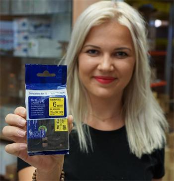 aletrantiv Brother páska do tiskárny štítků, Brother, TZE-611, černý tisk/žlutý podklad, laminovaná, 8m, 6mm